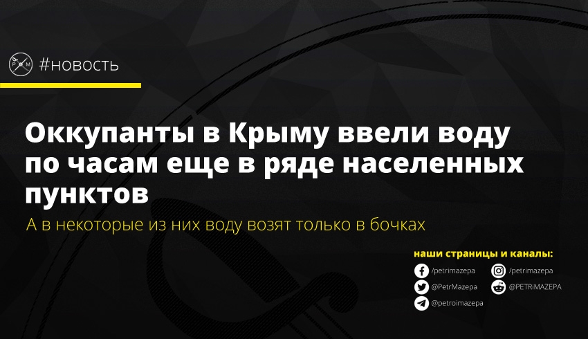 - 7 сентября в оккупированном Крыму сократили подачу воды до нескольких часов в день. За несколько недель до этого были объявлены планы по постепенному уменьшению водоснабжения жителей оккупированной территории.