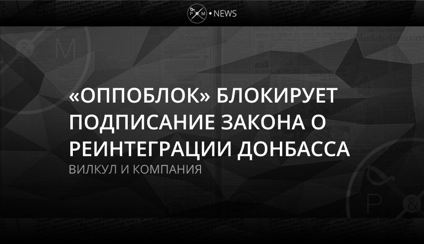 Представители «Оппоблока» зарегистрировали в Верховной Раде проект постановления, который блокирует подписание закона о реинтеграции (с такими усилиями принятого накануне). Среди «регистраторов» проекта 7163-П – сопредседатели фракции «Оппоблока» Юрий Бойко и Александр Вилкул, а также депутат от этой фракции Михаил Папиев.