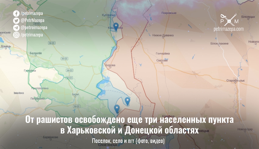 Из Харьковской и Донецкой областей продолжают приходить приятные новости от ВСУ, НГУ и других украинских защитников. Сегодня получены подтверждения освобождения еще трех населенных пунктов — двух в Донецкой области и одного — в Харьковской.