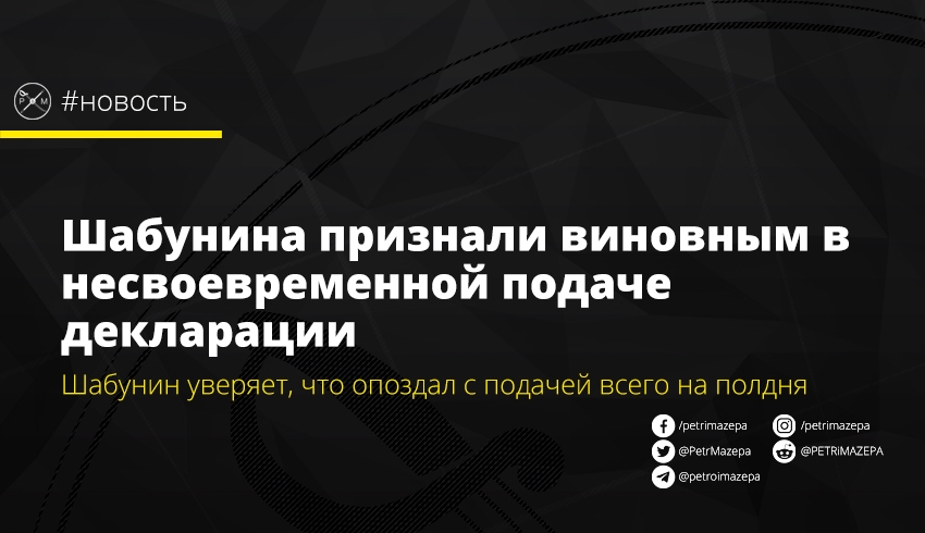 Печерский районный суд Киева признал виновным руководителя «Центра противодействия коррупции» Виталия Шабунина в несвоевременной подаче ежегодной декларации об имуществе и доходах.