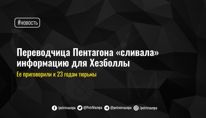 В США состоялся судебный процесс над одной из переводчиц Пентагона – Мэриам Томпсон. Ее обвинили в том, что она через «любимого мужчину» передавала секретную информацию об нацобороне страны ливанской Хезболле. Суд приговорил ее к 23 годам лишения свободы.