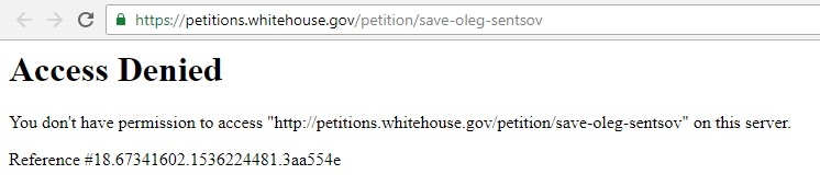 Петиция с призывом спасти украинского режиссера Олега Сенцова, который голодает в российской колонии, набрала необходимые сто тысяч подписей. Отмечается, что последние несколько дней украинцы испытывали трудности при попытке доступа к петиции на сайте Белого дома.