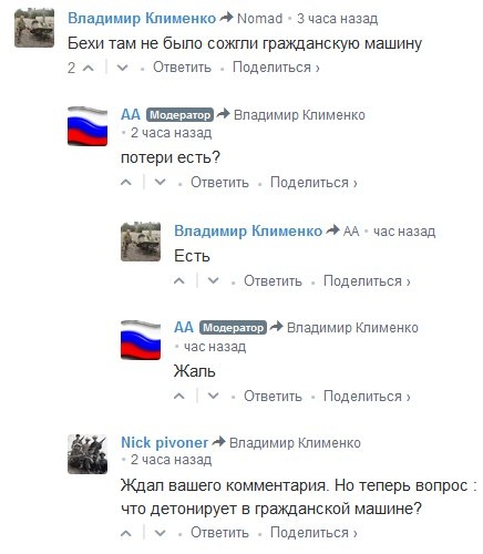 Это не помешало луганским террористам открыть памятник «российским добровольцам». Учитывая традицию самоподрыва памятников в городе, подпись от аккаунта «Другой Луганск» понять не сложно: «Ну всё, теперь и ВЛКСМ стал взрывоопасным!»