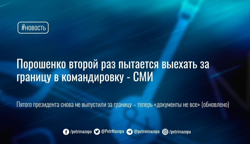 Позже в «УП» со ссылкой на свои источники в правоохранительных органах сообщили, что Петр Порошенко второй раз пытается пересечь границу Украины и выехать в официальную командировку по дипломатическому паспорту. Пока не известно, получил ли он разрешение.