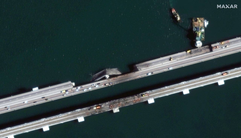 Сервис Maxar опубликовал новые спутниковые снимки поврежденного Керченского (Крымского) моста.
