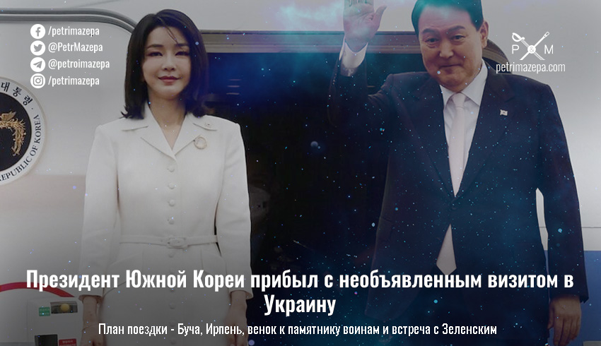 В Украину с неанонсированным визитом прибыл президент Южной Кореи Юн Сок Йоль вместе с первой леди Ким Кэон Хи. Они приехали из Польши.