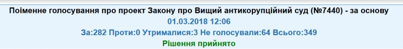 Соответствующее решение нашло поддержку у 282 народных депутатов. Ни одного голоса против и только трое народных депутатов из «Оппозиционного блока» воздержались.