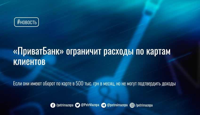 «ПриватБанк» ограничит расходы по картам клиентов, если при обороте 500 тысяч гривень в месяц они не смогут или откажутся документально подтвердить свои доходы.