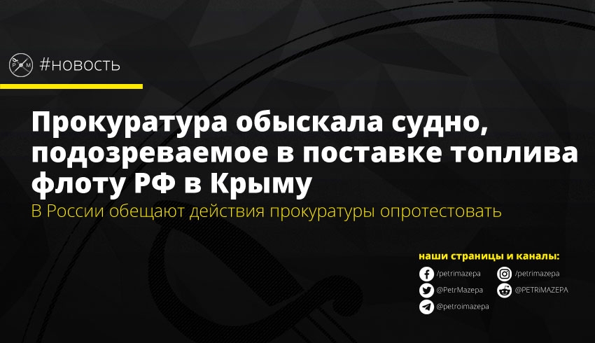 Прокуратура АР Крым провела обыски на судне «Мрия», которое на данный момент находится в Херсоне. Судно подозревается в контрабанде нефтепродуктов, а точнее – в том, что оно поставляло топливо подразделениям Черноморского флота РФ в оккупированном Крыму. В Совфеде страны-агрессора заявили, что считают действия незаконными и намерены их опротестовать.