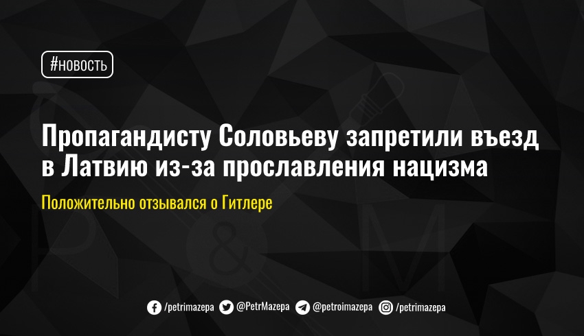 Пропагандисту Соловьеву запретили въезд в Латвию из-за прославления нацизма