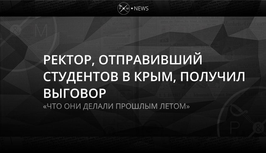 Министерство образования и науки Украины объявило выговор ректору Сумского педагогического университета Юрию Лянному, отправившему своих студентов на практику в аннексированный Крым. Как сообщает пресс-служба МОН, студенты, обучающиеся на специальности «Туризм», были в Крыму с 27 апреля по 7 мая (а также, вероятно, и летом прошлого года).