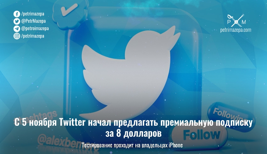 С 5 ноября Twitter начал предлагать премиальную подписку за 8 долларов