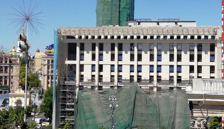 С Дома Профсоюзов в Киеве начали снимать баннер