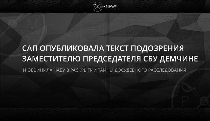 Специальная антикоррупционная прокуратура опубликовала текст подозрения первому заместителю председателя СБУ Павлу Демчине. В САП также утверждают, что НАБУ обнародовало информацию, которая составляет тайну досудебного расследования.