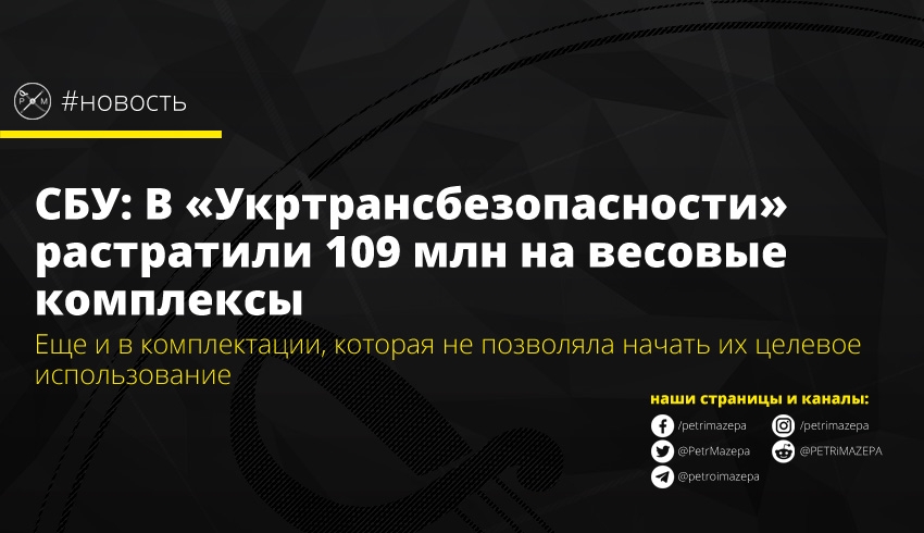 Служба безопасности Украины разоблачила экс-руководителей Государственной службы Украины по безопасности на транспорте в растрате 109 млн грн государственных средств на закупках некачественных комплексов весового контроля