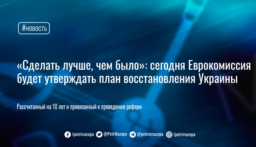 Европейская комиссия разработала стратегический план послевоенного восстановления Украины под названием «Отстроить Украину». Он предусматривает принцип «сделать лучше, чем было», но пока не содержит конкретных цифр. Зато известно, что выделение средств будет привязано к проведению реформ, приближающих Украину к вступлению в ЕС.