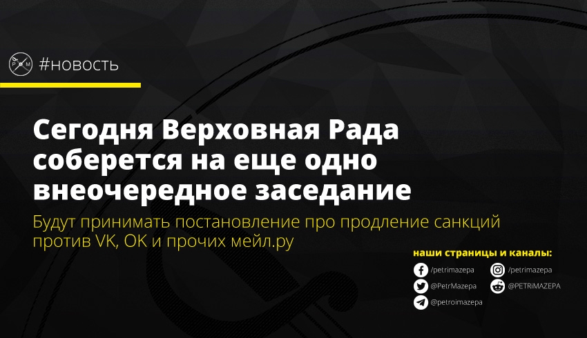 Сегодня, 13 мая, Верховная Рада соберется еще на одно внеочередное заседание. На нем планируют принять постановление о продлении санкций против российских соцсетей и интернет-сервисов.