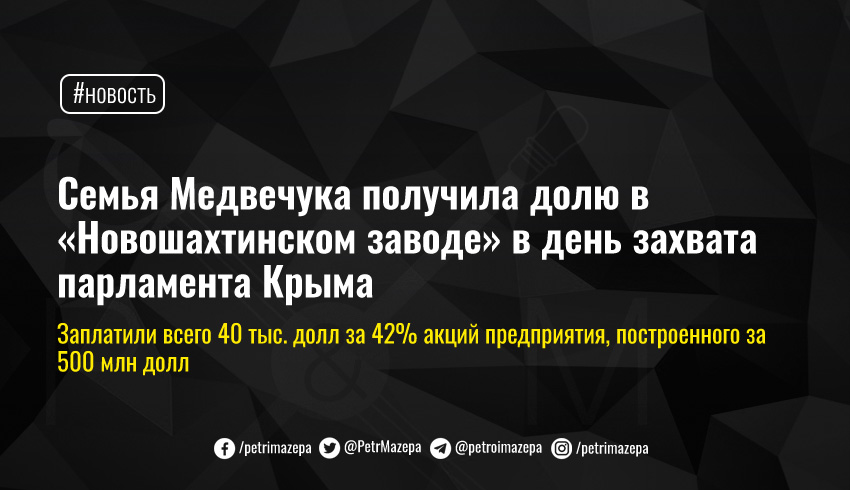 Семья Медвечука получила долю в «Новошахтинском заводе» в день захвата парламента Крыма