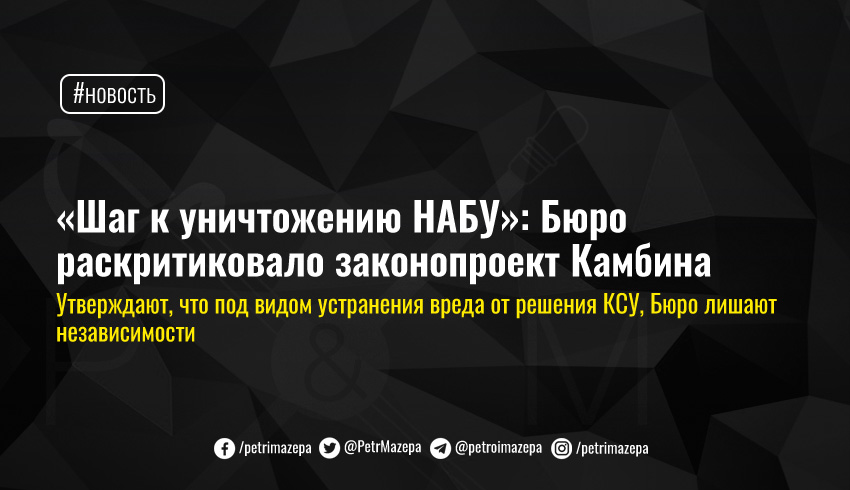 «Шаг к уничтожению НАБУ»: Бюро раскритиковало законопроект Камбина