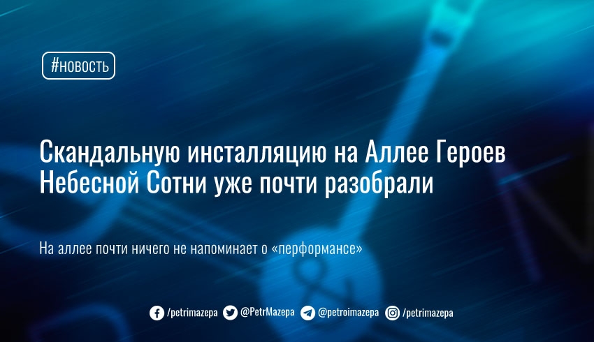 Скандальную инсталляцию на Аллее Героев Небесной Сотни уже почти разобрали