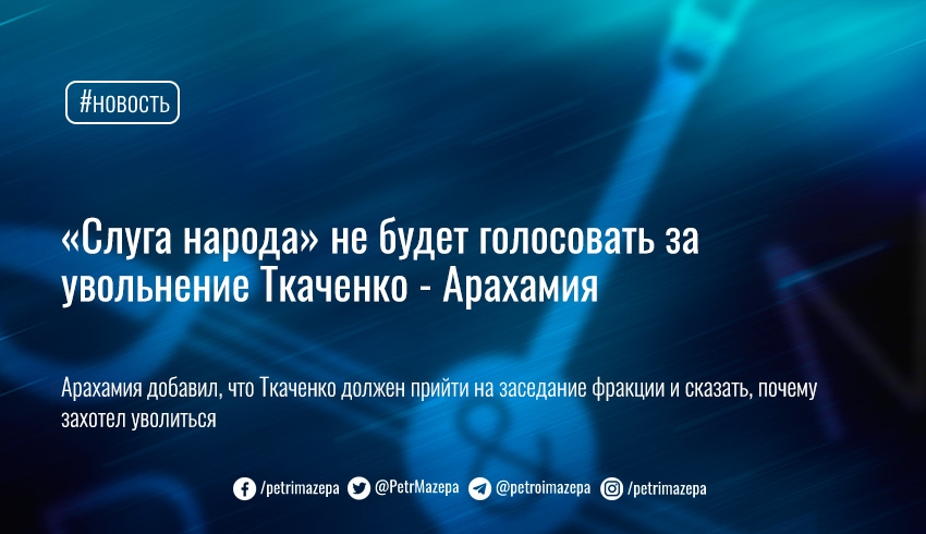 Арахамия добавил, что Ткаченко должен прийти на заседание фракции и сообщить, с какими позициями он не соглашается и из-за чего хочет уходить. А пока что Ткаченко даже не направил документального запроса относительно своего увольнения.