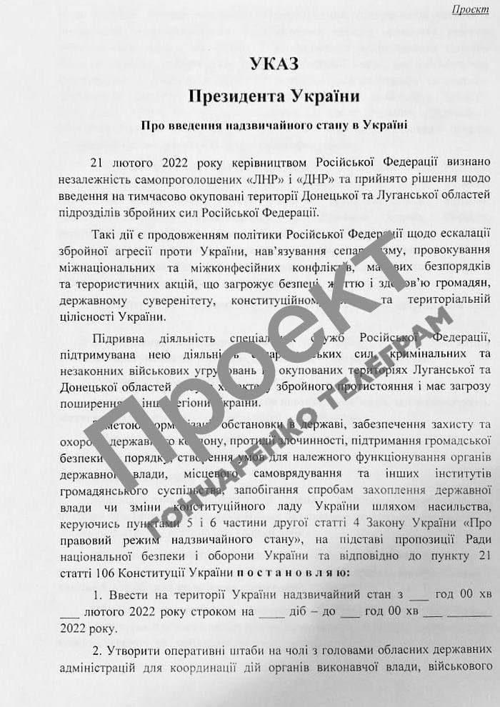 Нардеп Алексей Гончаренко опубликовал проект указа президента о введении режима ЧП. Среди предусмотренных ограничений (они могут вводиться выборочно и отдельно в разных административных единицах):