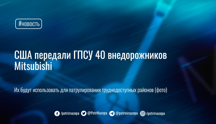 «Соединенные Штаты продолжают поддерживать Украину в ее усилиях по укреплению мира и безопасности. 4 февраля 2022 года Отдел технической помощи правоохранительным органам Украины (INL) Посольства США в Киеве передал ГПСУ сорок полноприводных грузовиков Mitsubishi. Эта техника является частью пакета неотложной помощи ГПСУ в размере 20 млн долл. и поможет в выполнении жизненно важных правоохранительных функций в ответ на агрессию России», - сообщает посольство США в Facebook.