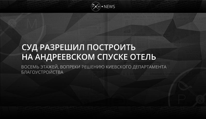 ЧП «Маркон» начало возводить отель на восемь этажей с ресторанами и паркингом по адресу Андреевский спуск, 14-16, но департамент благоустройства приостановил действие карточки на временное нарушение благоустройства. Компания оспорила в суде данное решение и аргументировало иск тем, что провела установление временного ограждения на период строительства гостиничного комплекса. Также ЧП «Маркон» потребовало запретить препятствовать работе строительного крана на Андреевском спуске. О положительном для застройщика решении стало известно из решения суда.