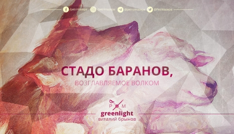 Стадо баранов, возглавляемое волком