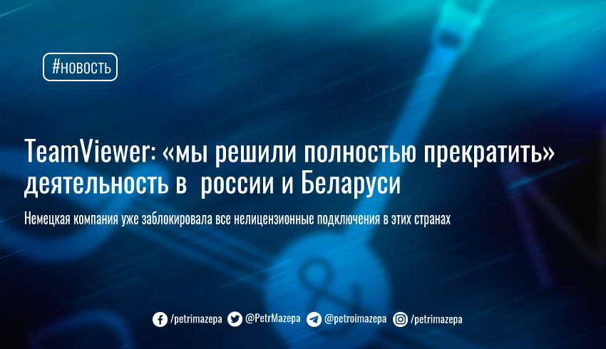 Немецкая компания TeamViewer, занимающаяся разработкой программного обеспечения для удаленного доступа, заявила о выходе из рынка россии и Беларуси.