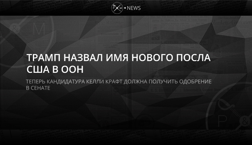 Президент США Дональд Трамп сообщил, что посол США в Канаде Келли Крафт будет назначена постоянным представителем США в ООН.