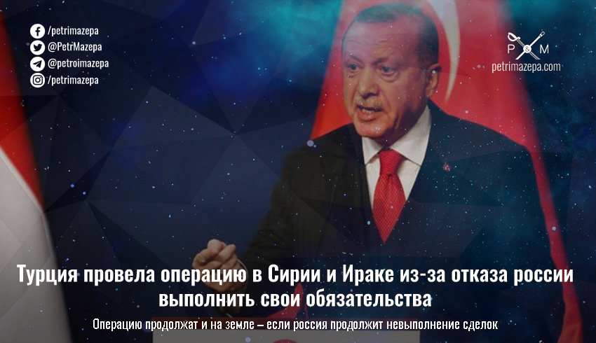 Турция провела операцию в Сирии и Ираке из-за отказа россии выполнить свои обязательства