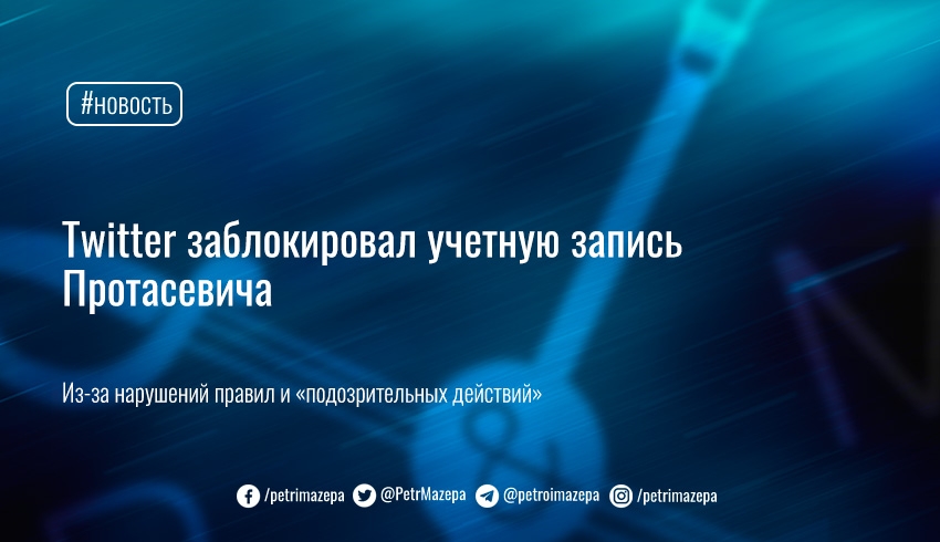 Социальная сеть Twitter заблокировала учетную запись оппозиционного беларуского блогера Романа Протасевича.