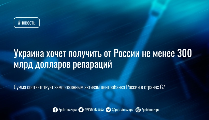 Украина хочет получить от России репарации в связи с войной в размере не менее 300 миллиардов долларов.
