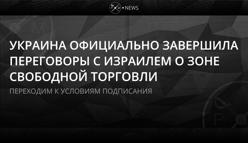 Украина официально завершила активизированные в 2015 году переговоры с Государством Израиль по формированию и подписанию Соглашения о зоне свободной торговли.