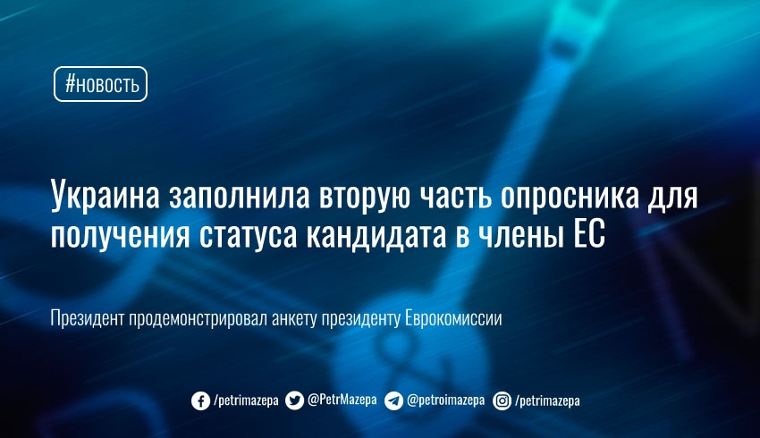- 1 мая сообщалось, что Украина планирует подать вторую часть опросника ЕС уже вскоре — причем первую часть к тому моменту проработали в Евросоюзе и не имели дополнительных вопросов.
