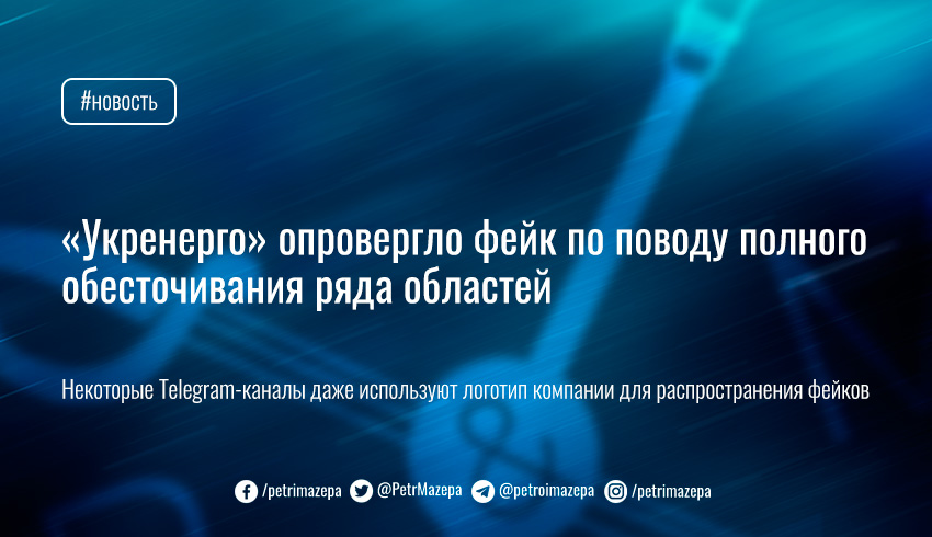 В украинских Telegram-каналах вчера, 17 ноября, начали появляться сообщения от имени «Укрэнерго» о том, что некоторые области Украины якобы ожидают полного или частичного обесточивания.