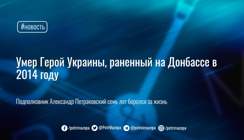 «В этот скорбный день (День памяти погибших защитников Украины - ред.) получил еще одно чрезвычайно трагическое известие... После длительной борьбы за жизнь скончался выпускник Национальной академии сухопутных войск Герой Украины подполковник Александр Петраковский», - написал Ткачук.