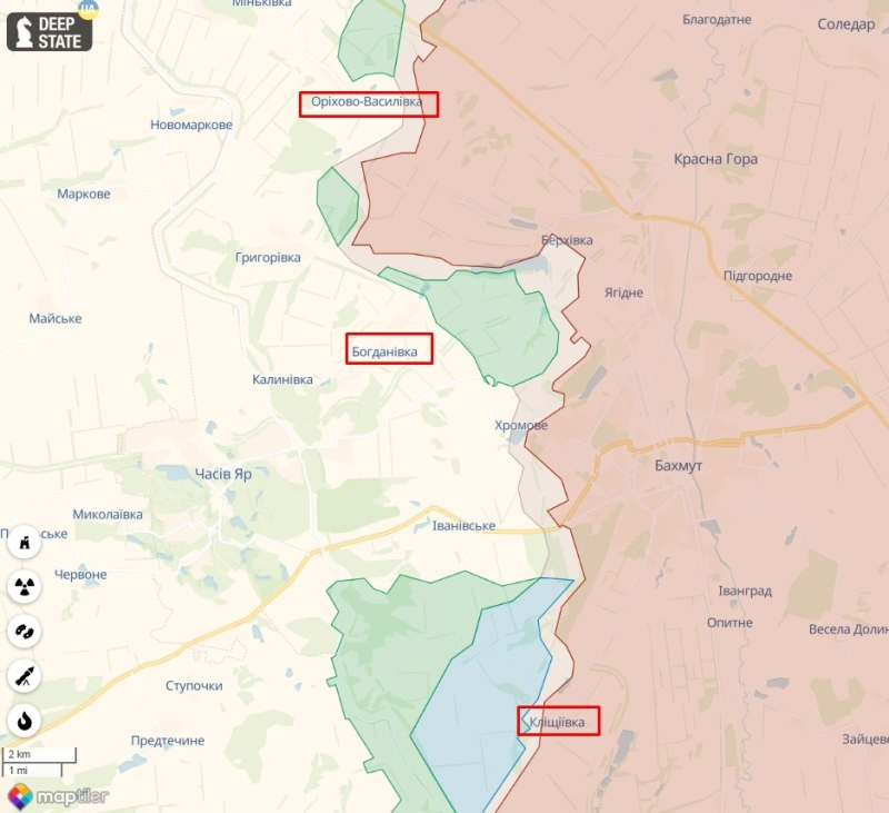 - На Бахмутском направлении под плотным огнем авиации и артиллерии противника наши защитники успешно отразили атаки противника в районе Богдановки Донецкой области. Также в ходе ведения боевых действий российские оккупанты вынужденно отступили с позиций северо-восточнее Орехово-Васильевки. Наши воины имеют частичный успех, закрепляются на достигнутых рубежах. По данным DeepState, также Силы обороны имеют успех в окрестностях Клещиевки.