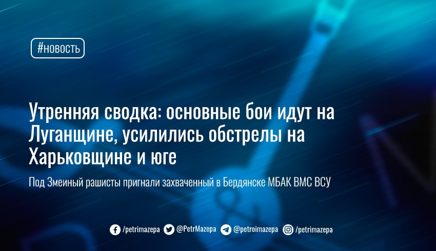 • В вечерней сводке 25 мая сообщалось, что основные усилия русских сейчас сосредоточены на Бахмутском и Лиманском направлениях. Кроме того, оккупанты готовятся к наступлению на Новопавловском и Запорожском направлениях. А Сергей Гайдай уточнял, что захвачено уже 95% Луганской области.