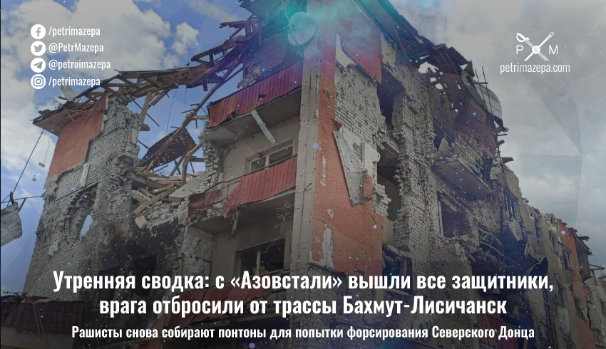 Утренняя сводка: с «Азовстали» вышли все защитники, врага отбросили от трассы Бахмут-Лисичанск