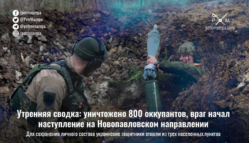 Утренняя сводка: уничтожено 800 оккупантов, враг начал наступление на Новопавловском направлении