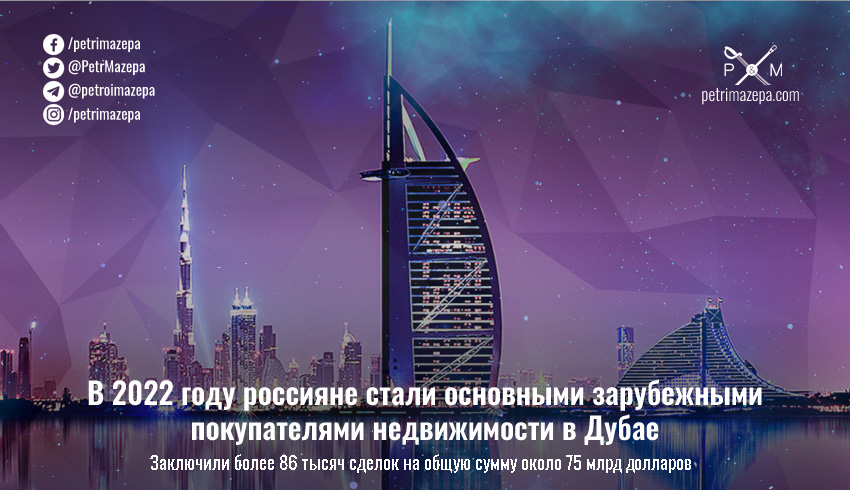 В 2022 году россияне стали основными зарубежными покупателями недвижимости в Дубае. Российские граждане заключили более 86 тысяч сделок с дубайской недвижимостью на общую сумму около 75 миллиардов долларов.