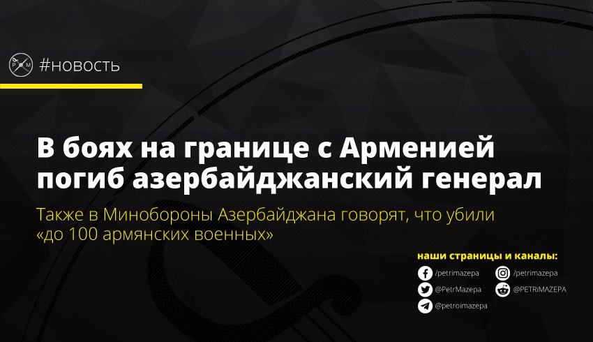 В министерстве обороны Азербайджана сообщили, что в результате боев на границе с Арменией погибли два высокопоставленных офицера ВС Азербайджана. Обе страны также показали видео уничтожения военных укреплений противника.