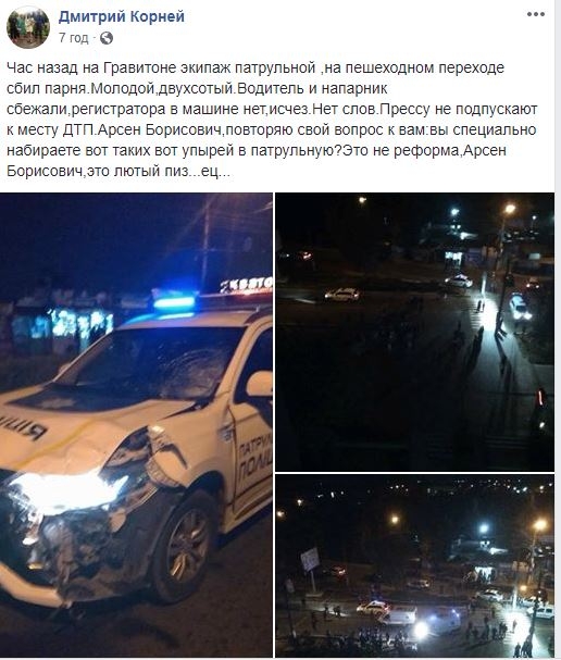 До появления официальной версии, большинство СМИ в своих новостях ориентировались на пост в Facebook местного жителя Дмитрия Корнея. В нем он сообщил, полицейские сбежали, регистратор пропал, а полиция не пускает СМИ на место происшествия. А пешехода сбили на пешеходном переходе.
