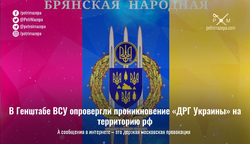 В Генеральном штабе ВСУ отрицали заявления россии об «украинских ДРГ» на территории россии — армия Украины ведет боевые действия исключительно на территории Украины.