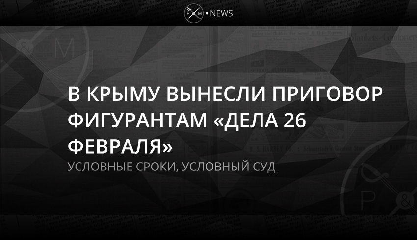 В аннексированном Крыму подконтрольный Кремлю Центральный райсуд Симферополя приговорил к условным срокам фигурантов так называемого «дела 26 февраля».  Двоих из них – Али Асанова и Мустафу Дегерменджи – приговорили к 4 годам и 6 месяцам условно, ещё двоих – Арсена Юнусова и Эскендера Кантемирова – к 4 годам условно, пятого – Эскендера Эмирвалиева – к 3 годам и 6 месяцам условно, с испытательным сроком 3 года каждому, сообщает «Крым.Реалии».