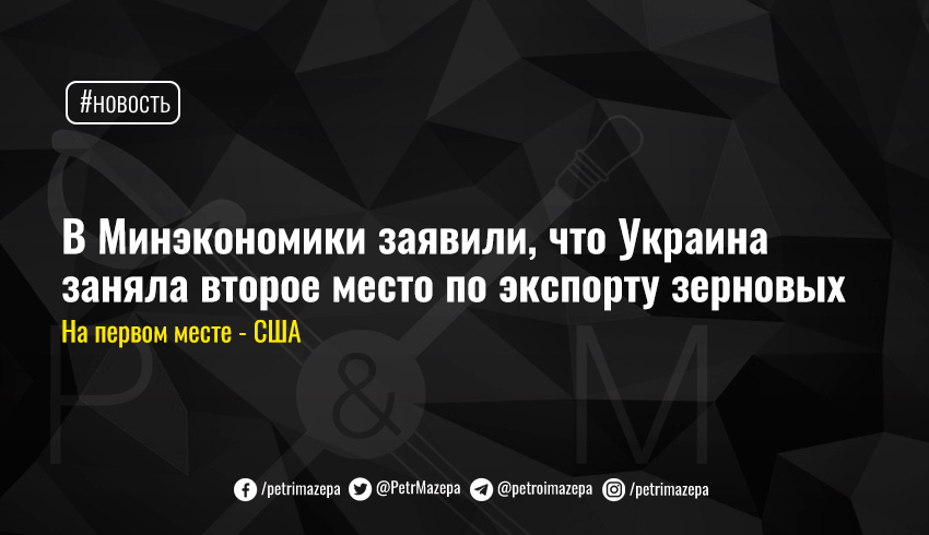 Украина по результатам 2019-2020 маркетингового года в совокупности по объему экспорта всех зерновых культур стала вторым экспортером в мире после США.