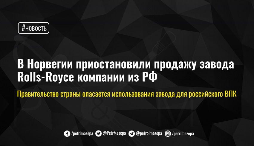 В Норвегии приостановили продажу завода Rolls-Royce компании из РФ