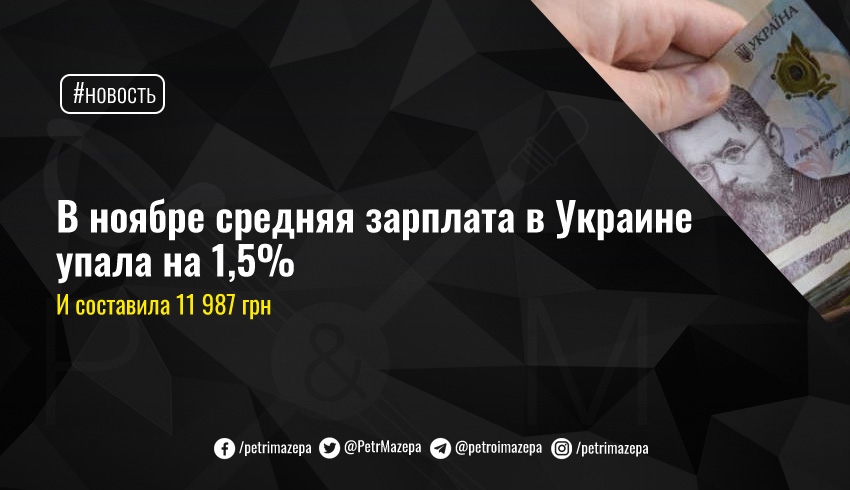 В ноябре средняя зарплата в Украине упала на 1,5%